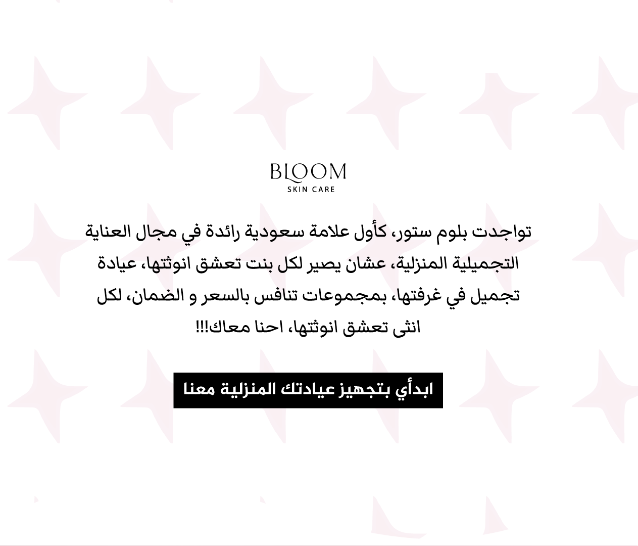 تواجدت بلوم ستور، كأول علامة سعودية رائدة في مجال العناية التجميلية المنزلية، عشان يصير لكل بنت تعشق أنوثتها، عيادة تجميل في غرفتها، بمجموعات تنافس بالسعر و الضمان، لكل أنثى تعشق أنوثتها، حنا معك !!!